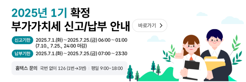 7월은 부가가치세 신고,납부의 달입니다. 부가세 신고 미루지 말고 홈택스나 손택스로 빠르게 신고하세요!
