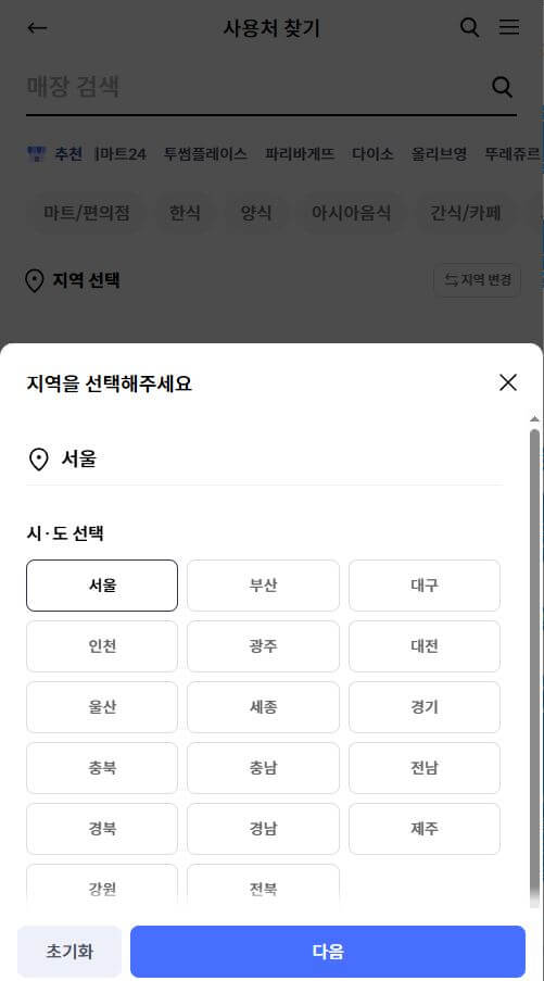 민생회복 소비쿠폰 사용가능 매장 확인하기